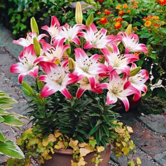 Лилия восточная горшечная Гарден Пати купить по цене от 310.00р. в интернет-магазине «Посадика» с доставкой почтой в в Москве и по всей России – [изображение №1].
